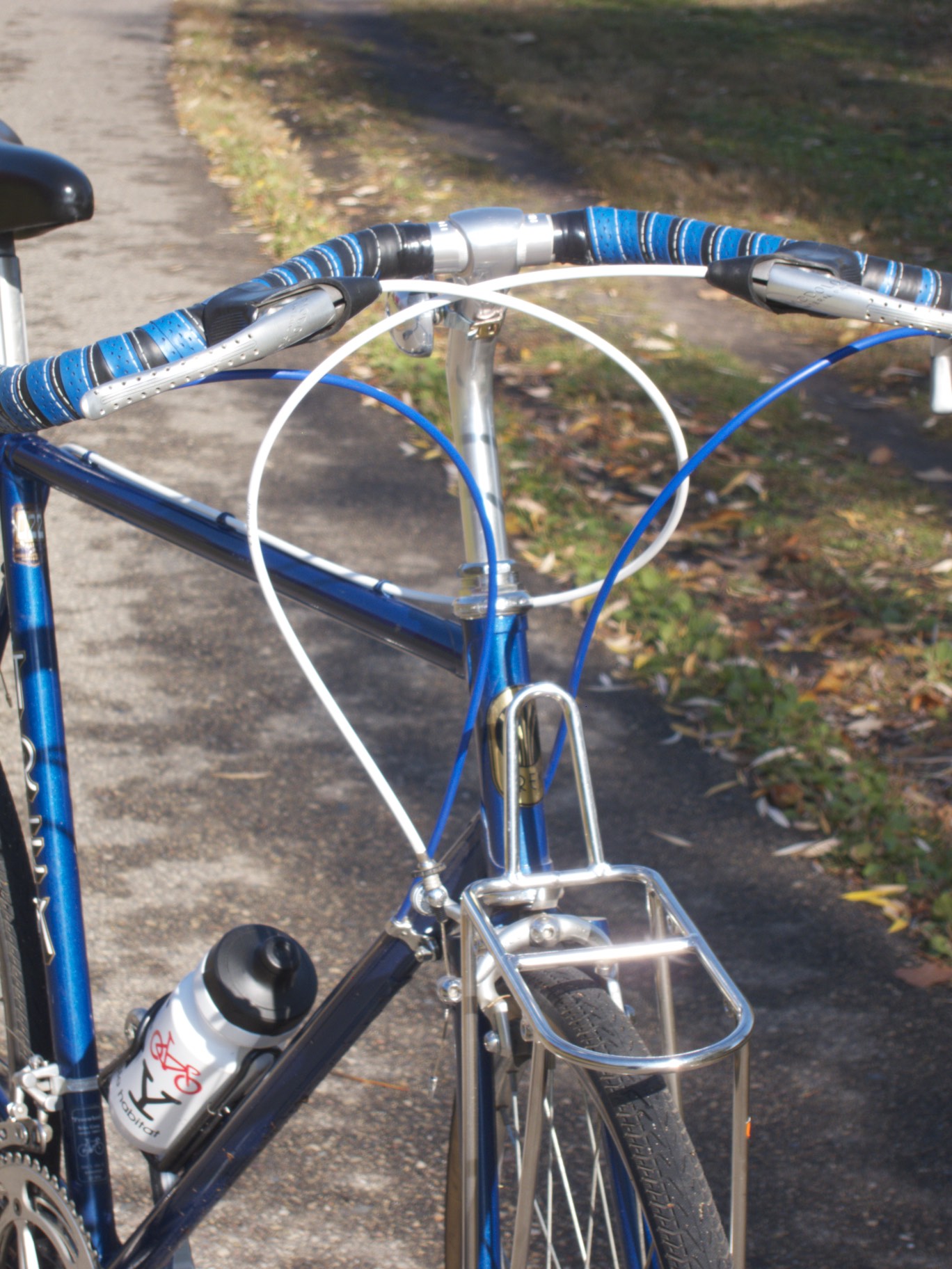 Unlike the off the rack Trek bikes from this era this particular bike was purchased as a frame and fork and custom built with some of the best components available at the time including a full Campagnolo drive train, Modolo brakes and hand made Rigida wheels. This first set of pictures shows the bike with these original components in place, along with the Panaracer 1-1/4″ tires, Nitto Dirt Drop stem, Mustache bar and Velo Orange front rack that I added when I first set up the bike as my daily commuter.